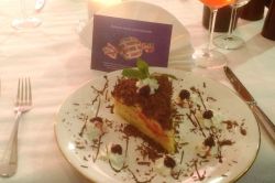 - Cassata Siciliana Torte mit luftigem Biskuit, getränkt mit hauseigenem Rumsirup, gefüllt mit aromatisierter Ricotta und Schokoladen-Spänen und mit grünem Marzipan überzogen